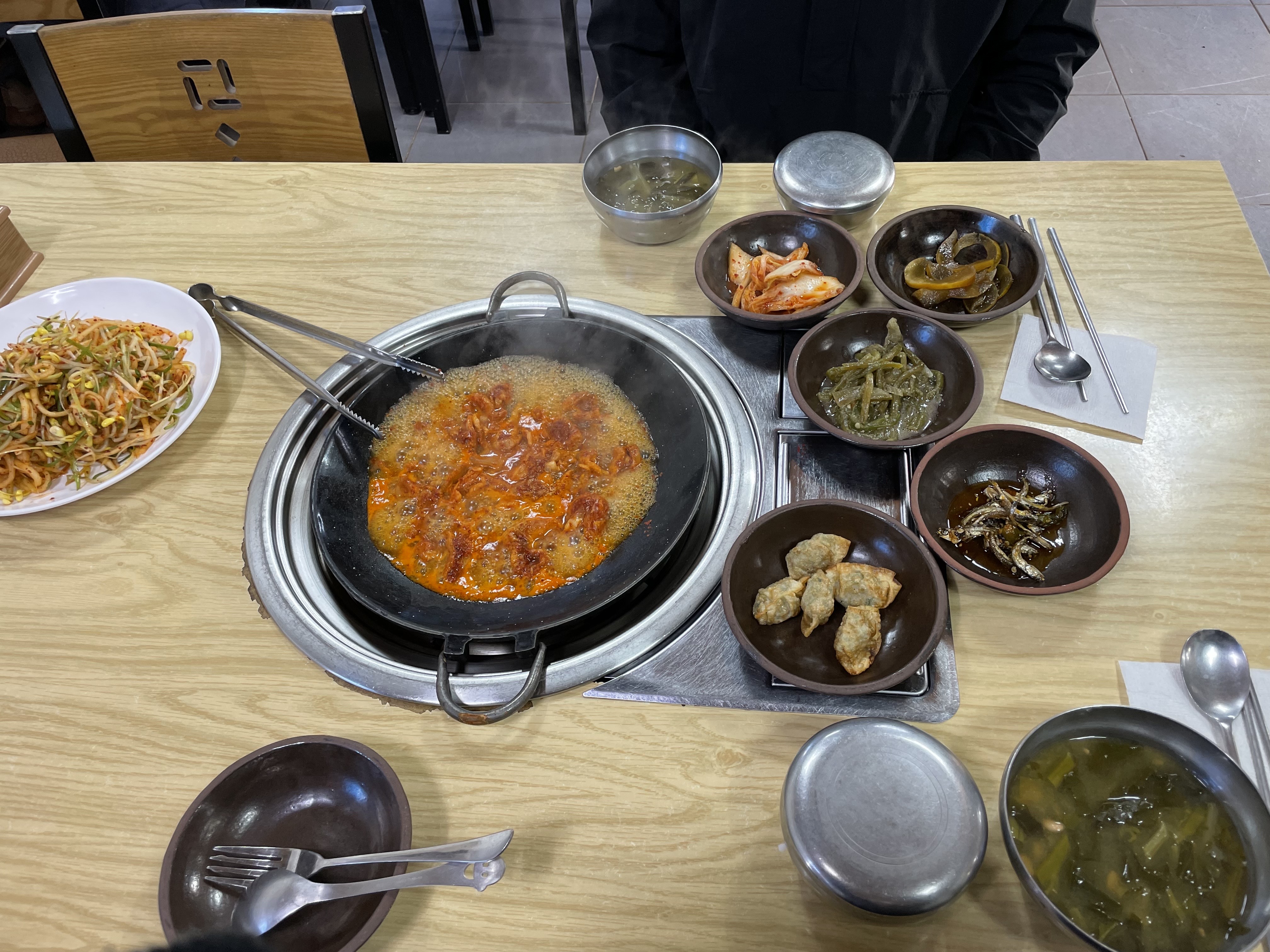 점심특선메뉴인 "흑돼지두루치기"와 소뼈 육수로 맛을 낸 차가운 김치말이국수인 "동백낭국수"를 시켰습니다.