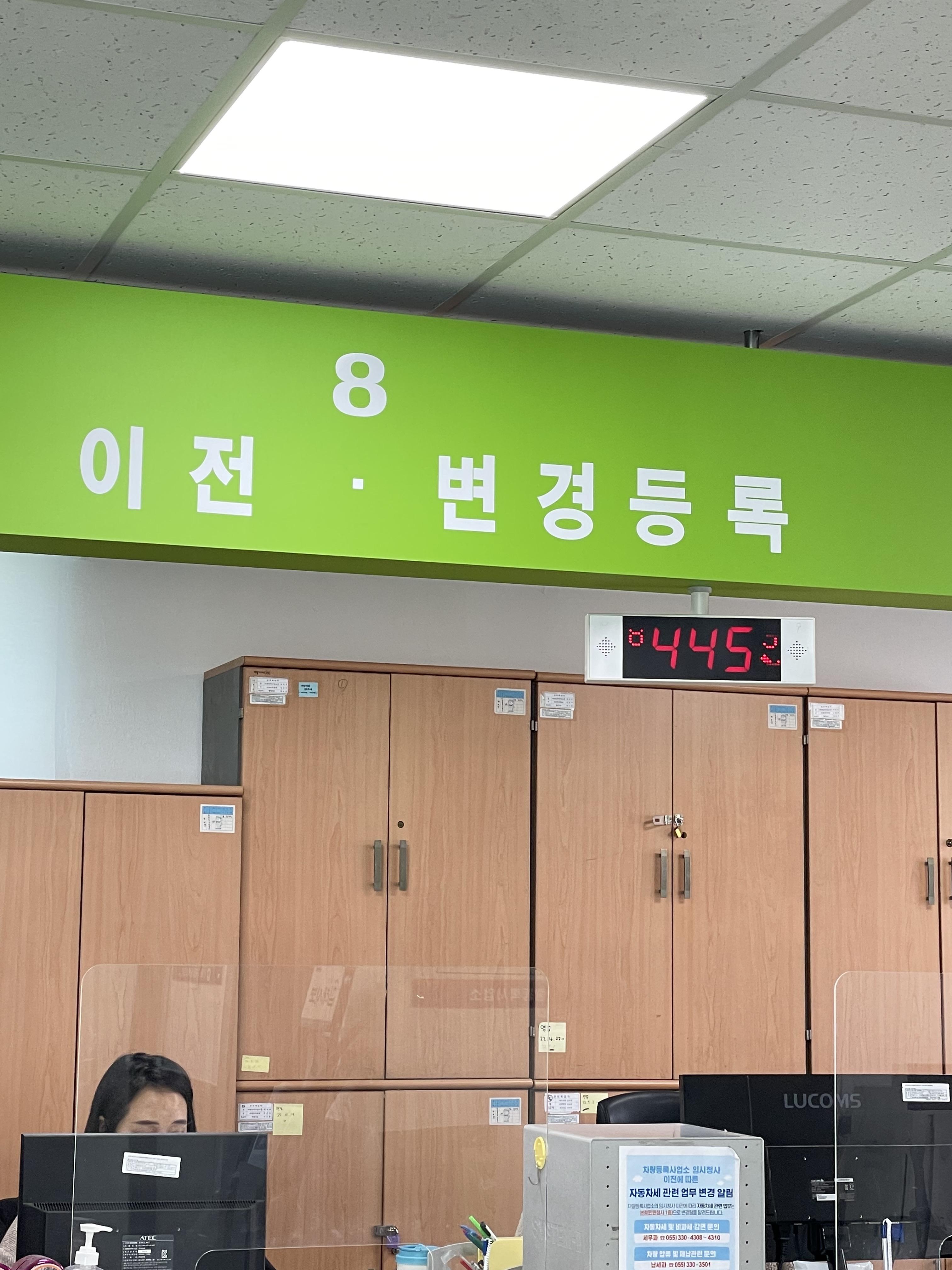 2. 번호표를 뽑고 이전, 변경등록이 있는 8번 창구로 갑니다.