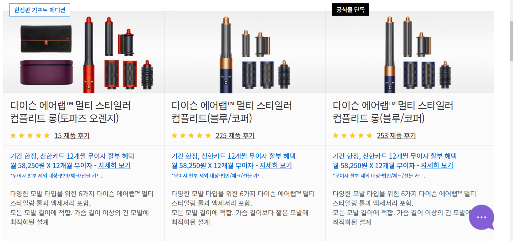 현재 사이트 내 판매중인 에어랩 종류