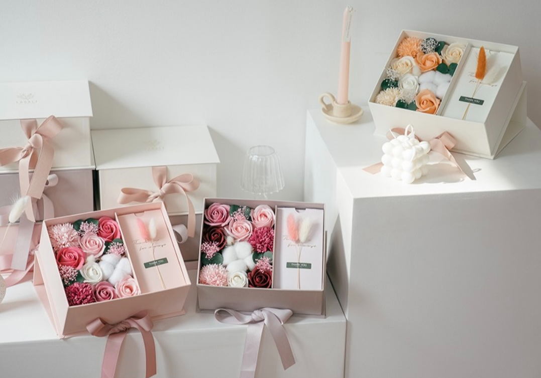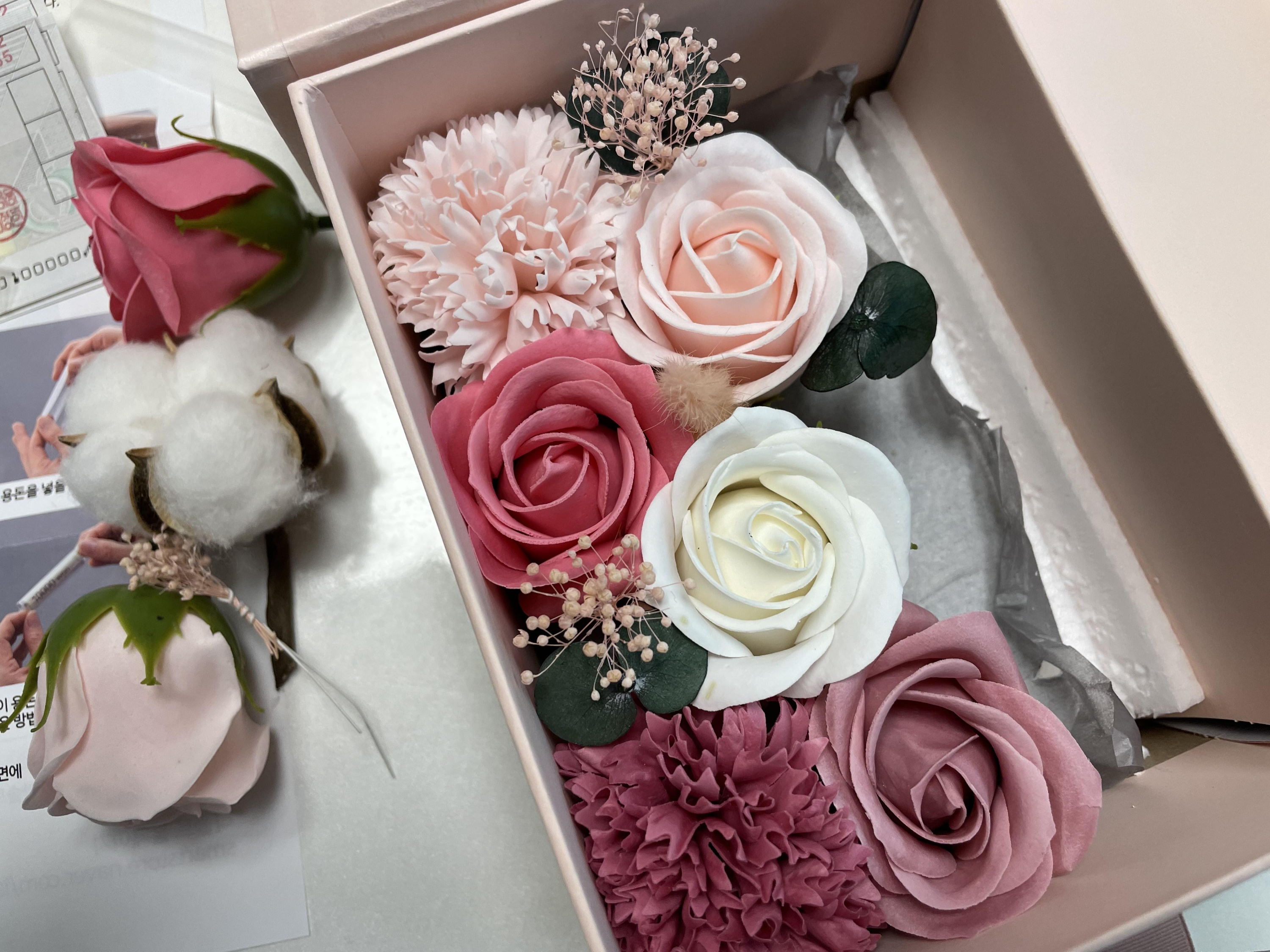 선물박스 [비누꽃 (장미, 목화, 카네이션) + 용돈 넣을 공간 + OPP비닐 12장] + 쇼핑백