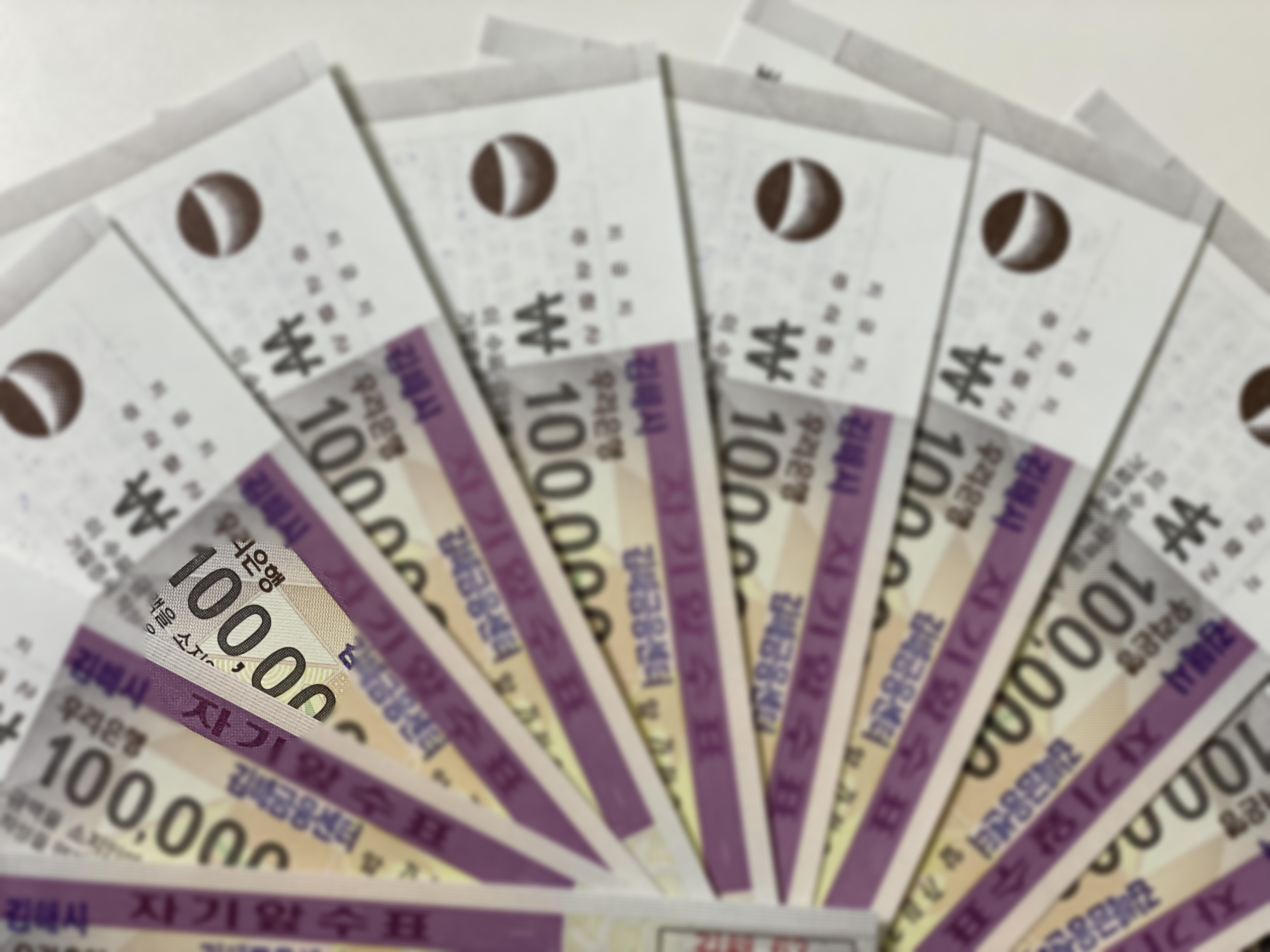 10만 원권 수표는 5만 원 지폐처럼 가로로 돌돌 말았을 때, 금액이 표시되어있지 않더라고요.