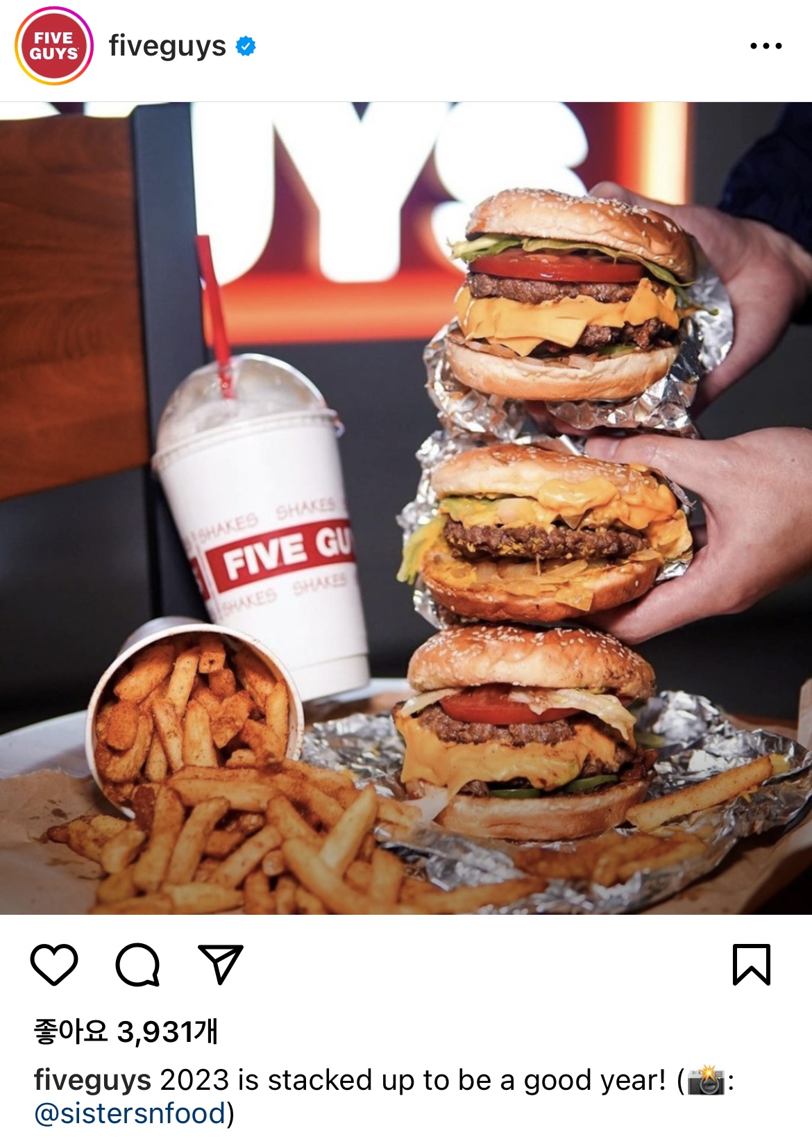 쉑쉑버거가 국내에 첫 오픈했을때 기억나시나요? 그때 정말 인기가 어마어마했죠.. 줄 서서 오랜 시간 기다리고, 인증하고... 저 개인 피셜입니다만, 둘 다 먹어본 1인으로써, 쉑쉑버거보다 파이브가이즈가 더 고소하고 깊은 풍미가 느껴지는 맛이라 둘 중에 고르라면 저는 파이브가이즈입니다. (ㅎㅎ)