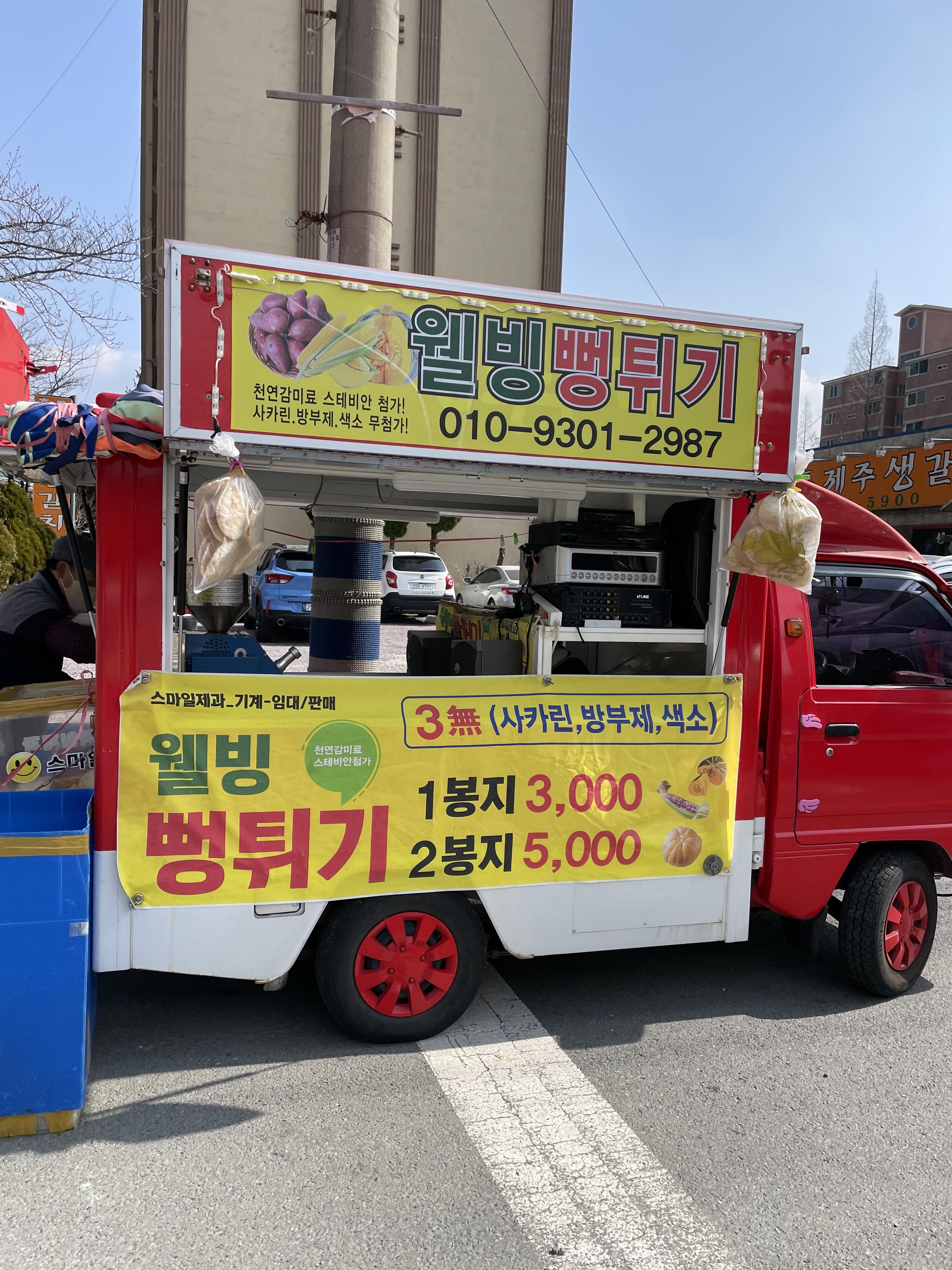 식사하고 나와서는 두 봉지나 샀어요. ㅎㅎㅎ 한봉지에 3천원, 두봉지 5천 원입니다.