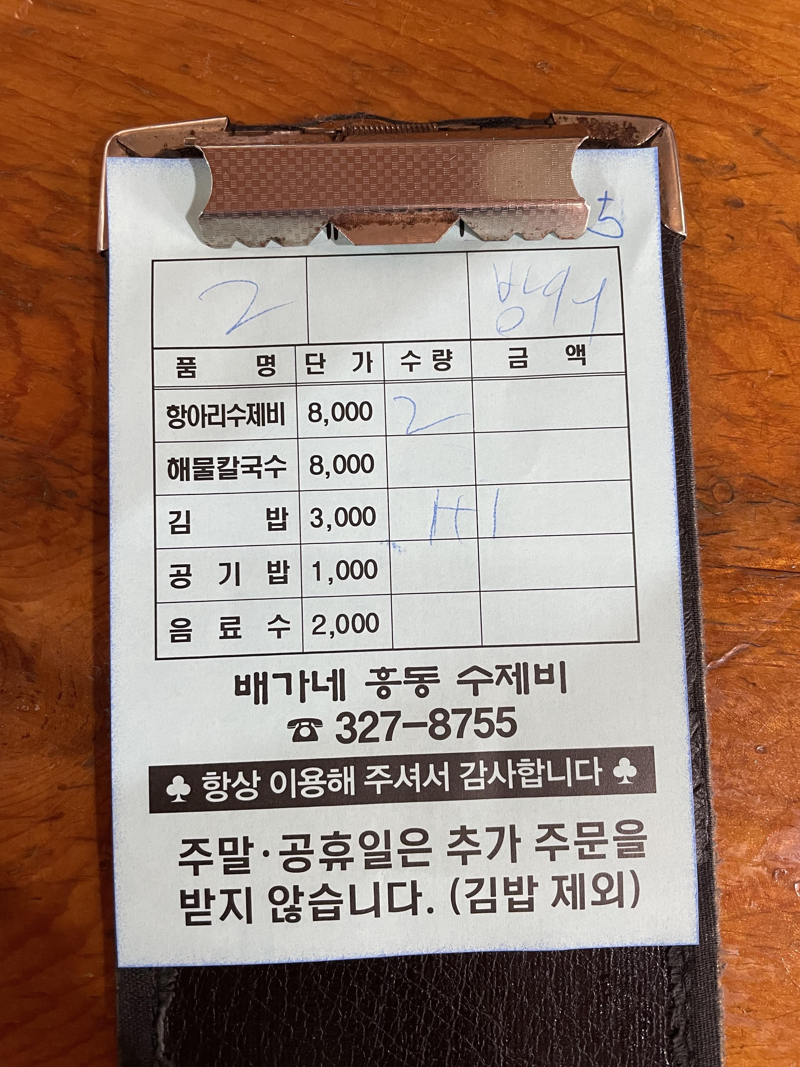 √ 주말, 공휴일은 수제비 및 칼국수의 추가주문을 받지 않는다고 합니다. (김밥은 추가주문 가능)