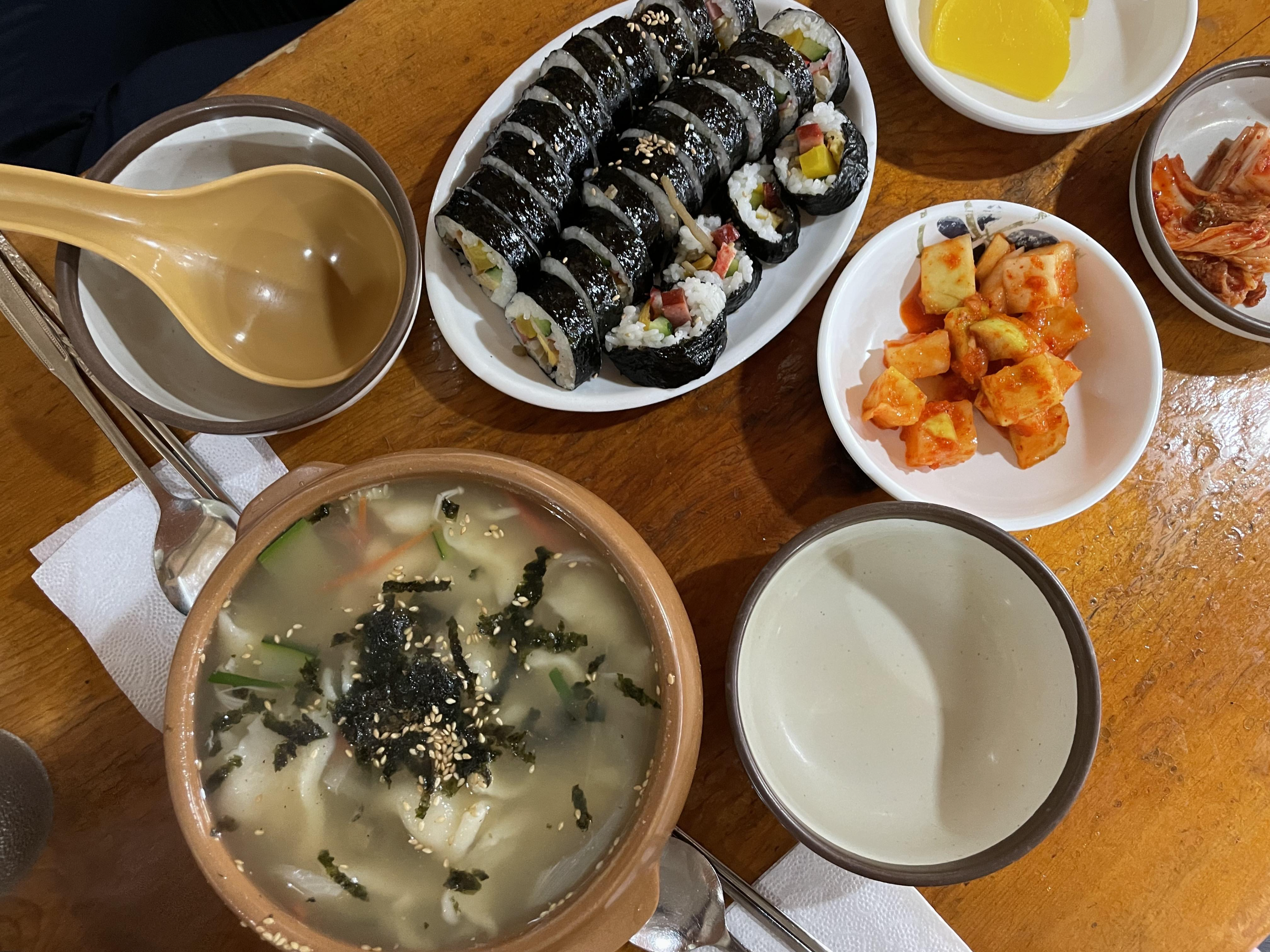 임신했을 때도 여기 수제비랑 김밥을 같이 먹고 싶어서 문 닫기 직전에 와서 허겁지겁 먹었던 기억이 있는데요, 한 가지만 먹기에는 아쉽고 수제비와 김밥, 깍두기를 같이 먹어야 맛있습니다. ㅎㅎ