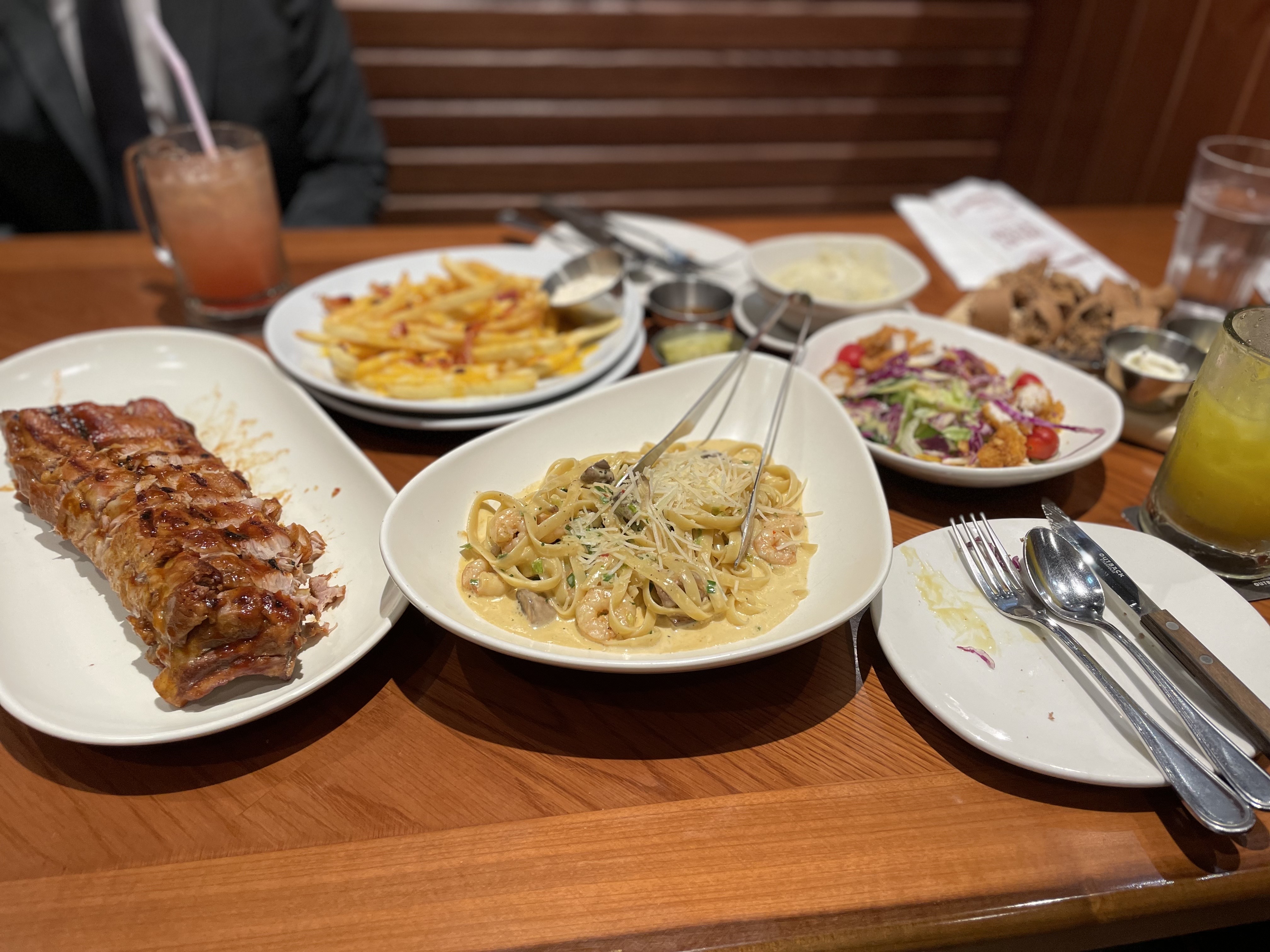 며칠 후에 한번 더 아웃백을 가게됐는데 런치타임에 성인 4명이서 "블랙라벨패밀리세트"를 먹었어요.