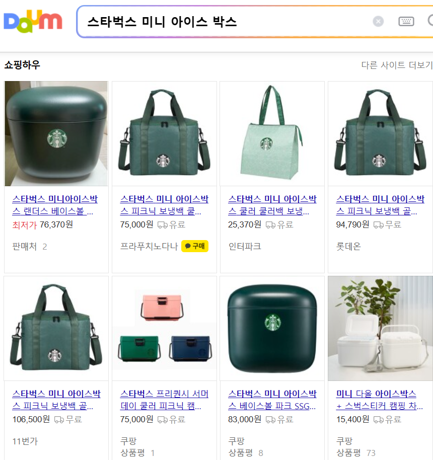 시중에 나와있는 스타벅스 미니 아이스박스를 검색해 보았습니다.