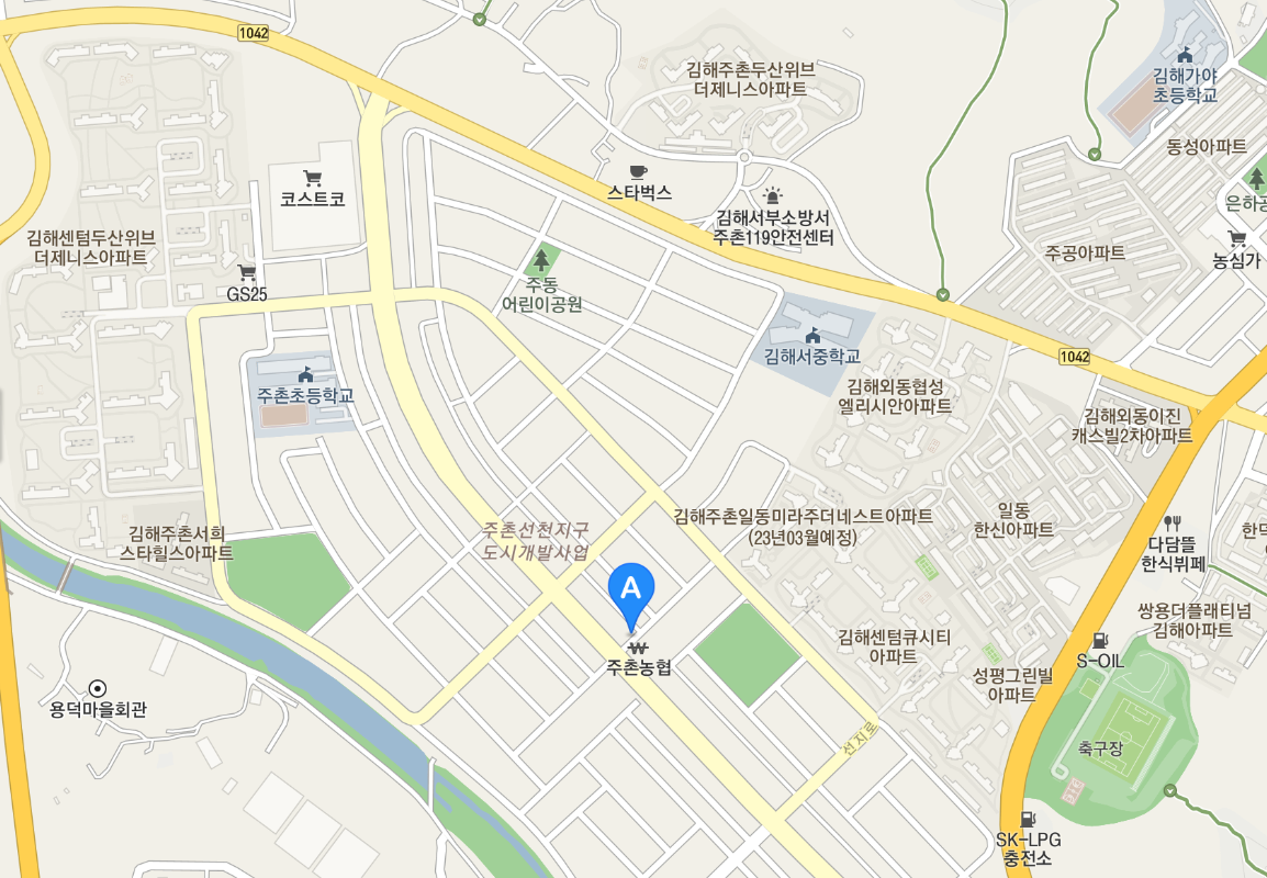 주촌 농협(선지점) 건너편 건물에 있고요, 입구는 더 벤티 커피매장 옆쪽에 있습니다.