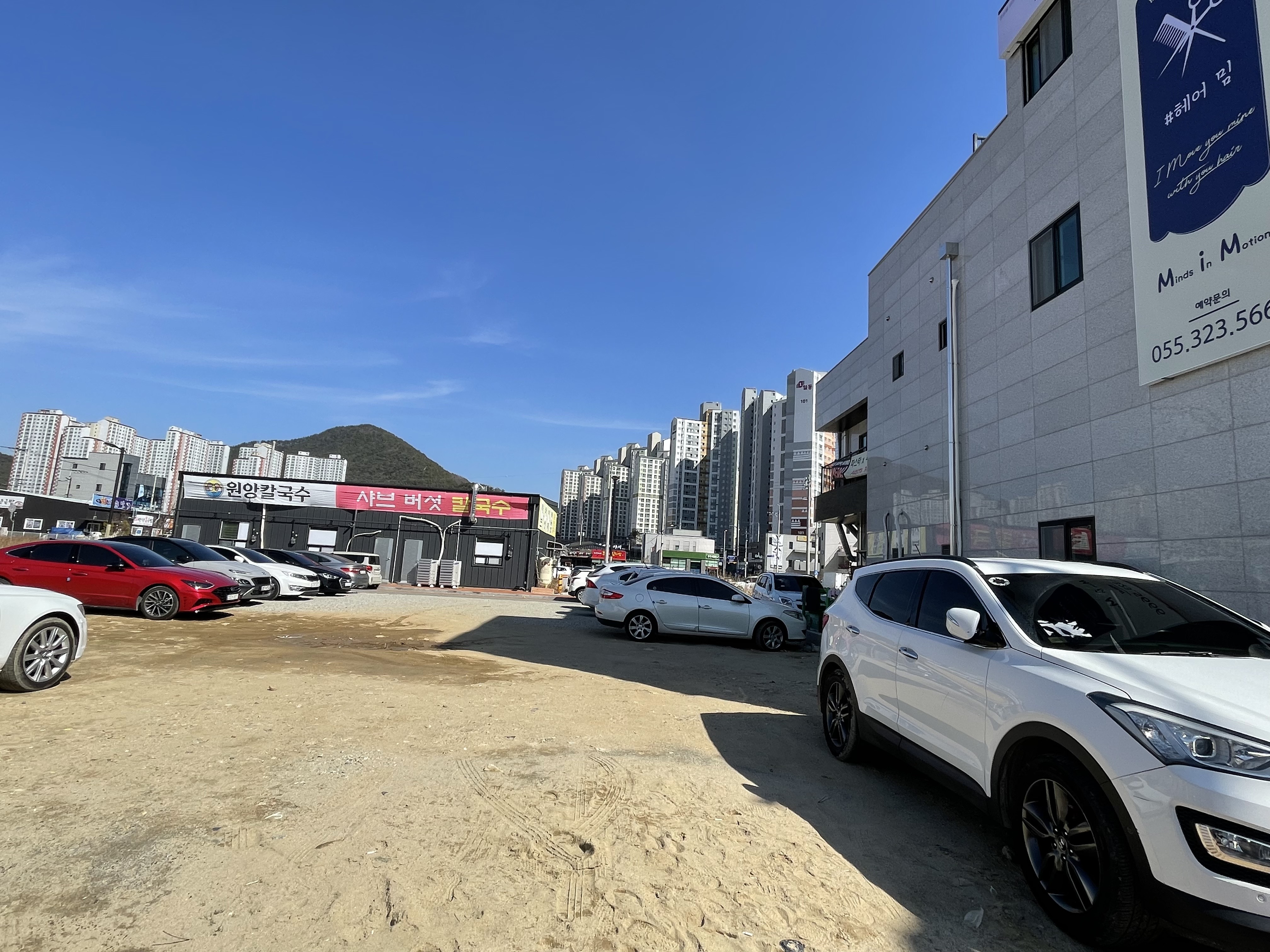 건물 옆 주차장 있음. 만차시 인근 도로에 편하게 댈 수 있음. (신도시라 아무데나 댈 수 있다는 이점이 있음)