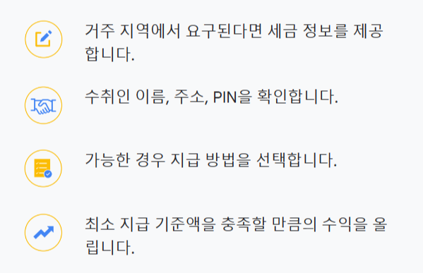 수익금을 지급받기 위해 반드시 완료해야 할 4가지 중요한 단계가 있습니다.